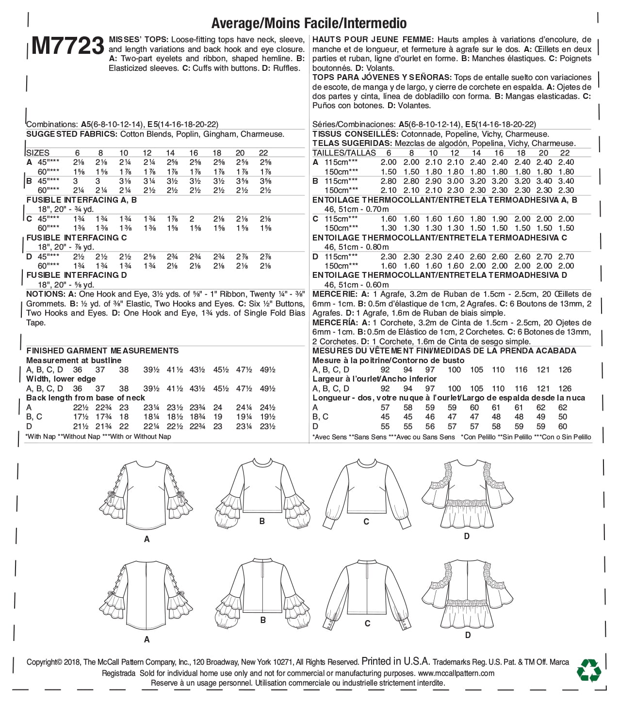New Mccall 039 S Pattern 7837 Blouse Top Size E5 14 16 18 20 22 Ebay